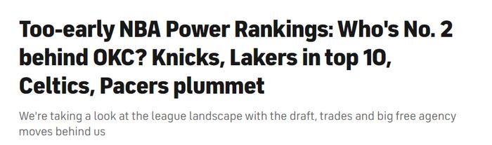 雷霆:太可怕了。雷霆队保留了冠军赛季所有关键球员,上赛季他们还拿下了联盟最佳战绩。他们的成功公式很明确:一端是窒息般的防守,另一端是亚历山大的高光表现。另外,雷霆还有杰伦-威廉姆斯和霍姆格伦这样仍在上升期的球员,俄克拉荷马城在卫冕之路上甚至可能更上一层楼。全联盟,祝你们好运吧。