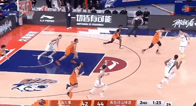 CBA常规赛,上海对阵青岛的比赛正在进行中。